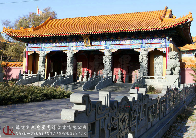 九龍星園林古建加工的寺廟石雕龍柱有單龍柱、雙龍柱、滾龍柱、盤龍柱、蟠龍柱、華表柱、龍鳳柱、八仙龍柱、青石龍柱等多種造型雕刻。我們通過專業且標準化的采購渠道,甄選優質的礦料,加工的寺廟石雕龍柱,大批量應用于寺廟建筑裝飾美化,贏得客戶好評。